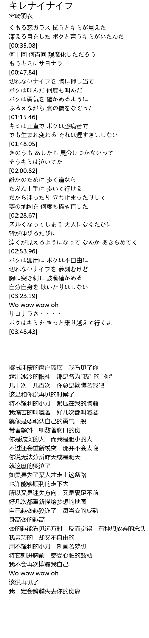 | [00:48.01] | 切れないナイフを 胸に押し当て |
