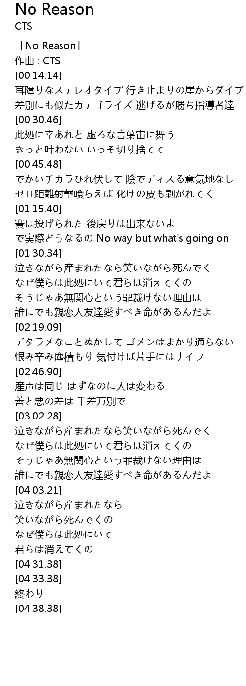 | [00:38.61] | きっと叶わない いっそ切り捨てて |