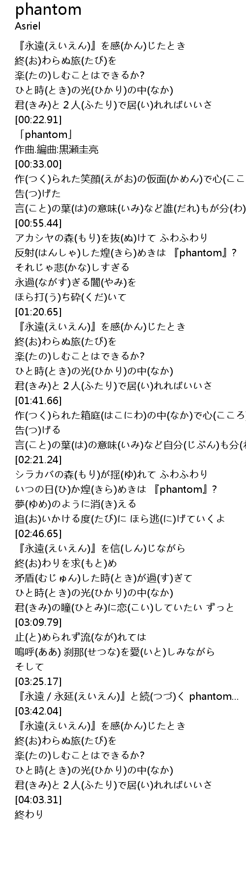 | [03:37.80] | 『永遠/永延(えいえん)』と続(つづ)く phantom... |