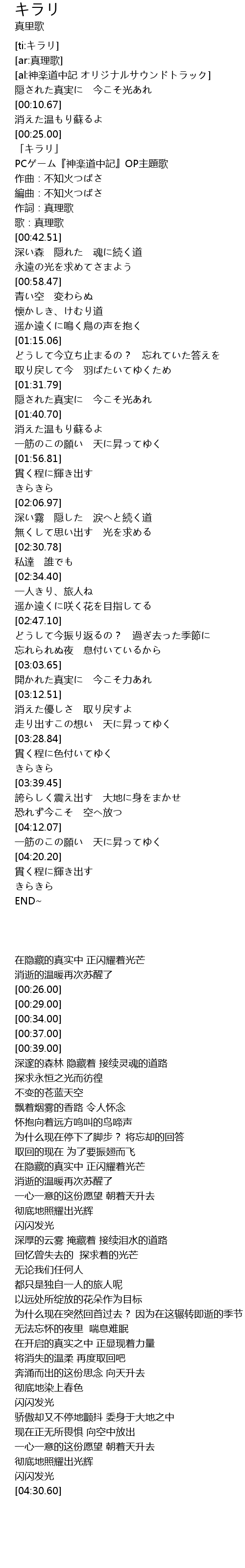 | [00:29.00] | PCゲーム『神楽道中記』OP主題歌 |