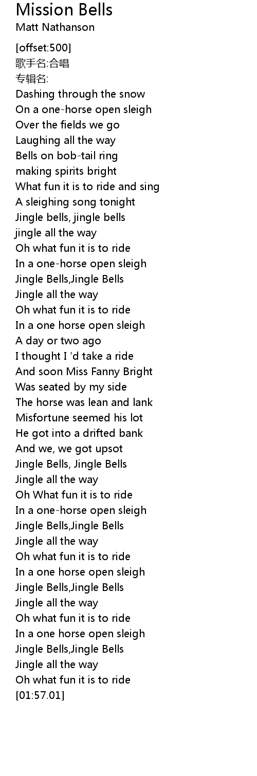 | [01:38.36] | Jingle Bells,Jingle Bells |