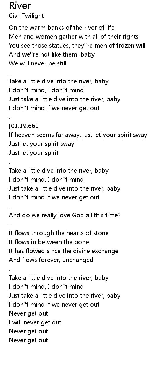 Just take a little dive into the river, baby |