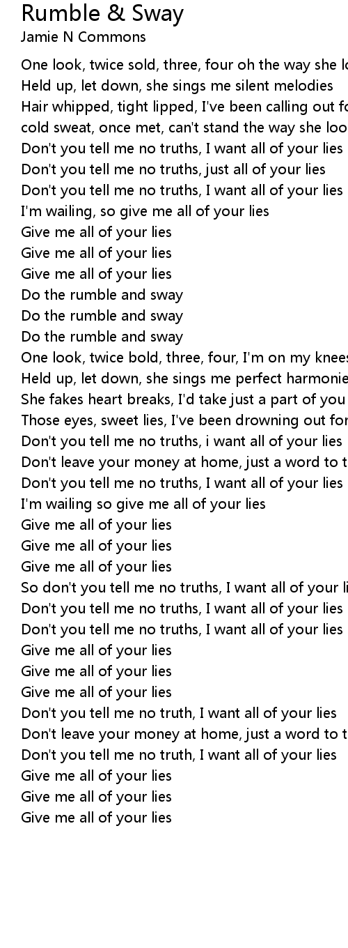 So don't you tell me no truths, I want all of your lies |