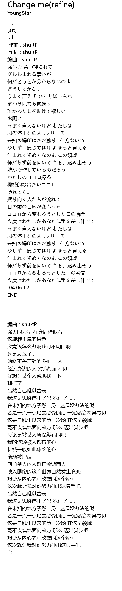 | [00:00.00] | 作曲 : shu-tP |