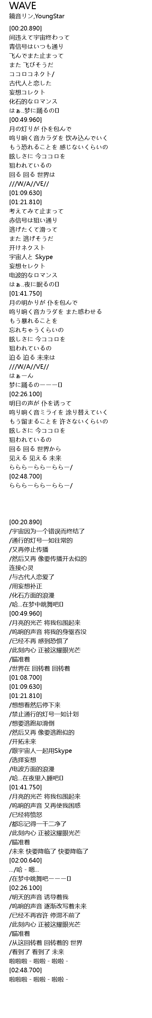| [01:45.800] | 鸣り响く音カラダを また惑わせる |