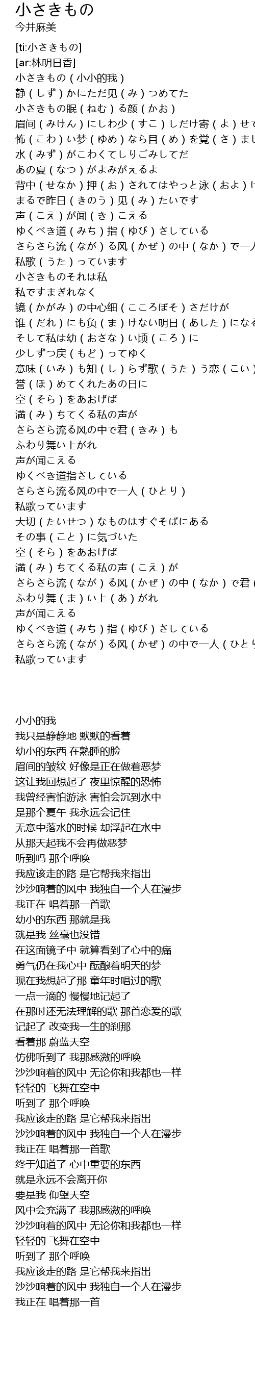 | [00:02.963] | xiǎo xiǎo xiǎo de wǒ |