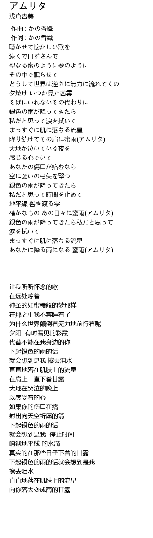 | [02:50.72] | 確かなもの あの日々に蜜雨(アムリタ) |