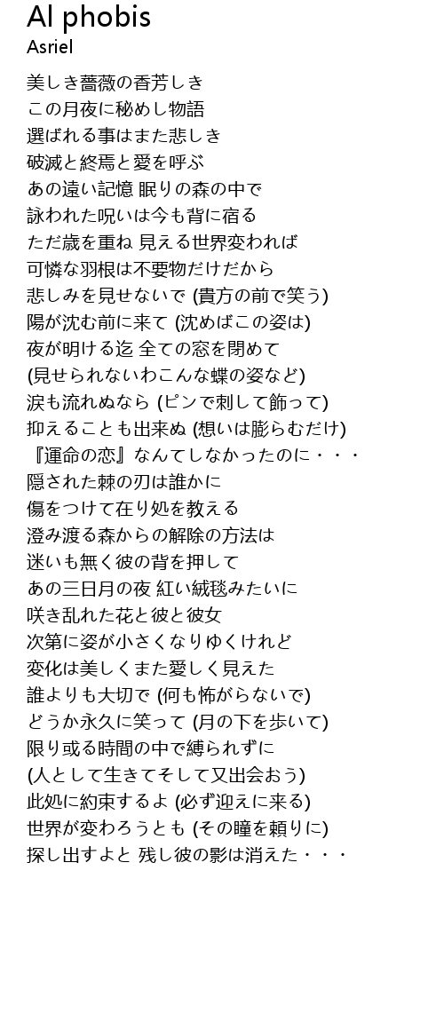 | 夜が明ける迄 全ての窓を閉めて (見せられないわこんな蝶の姿など) | |