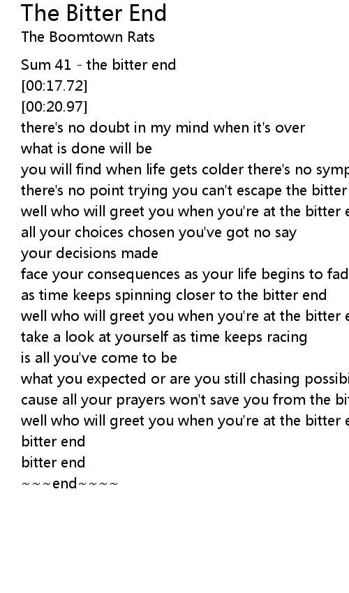 there's no point trying you can't escape the bitter end |