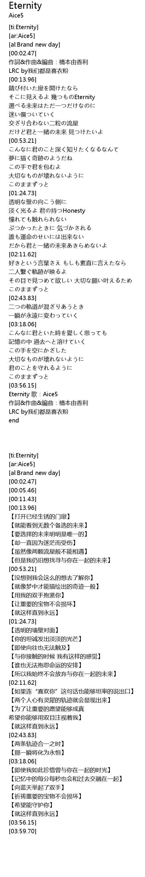 | [00:19.90] | そこに見えるよ 幾つものEternity |