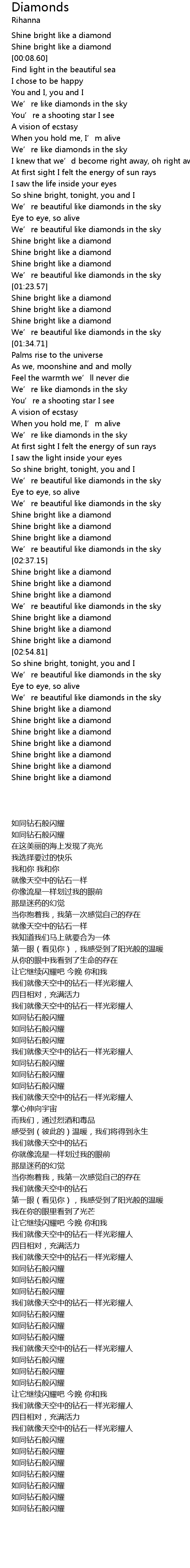| [02:37.60] | Shine bright like a diamond |