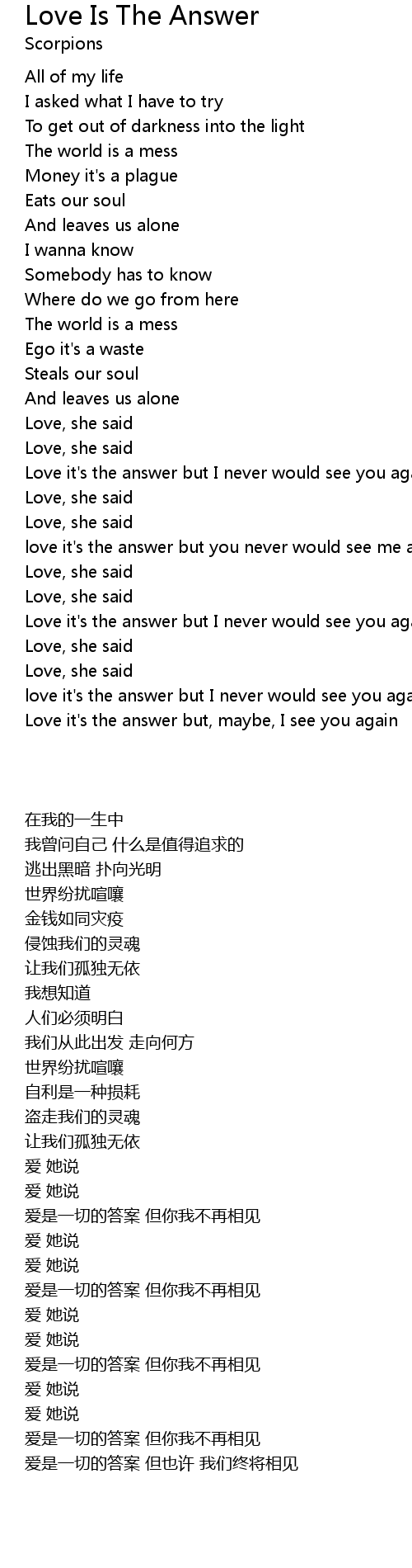 love it's the answer but I never would see you again |