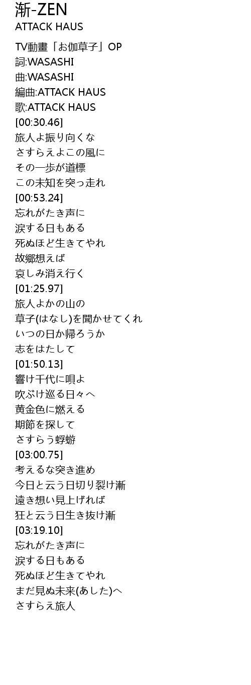 | [03:10.30] | 狂と云う日生き抜け漸 |
