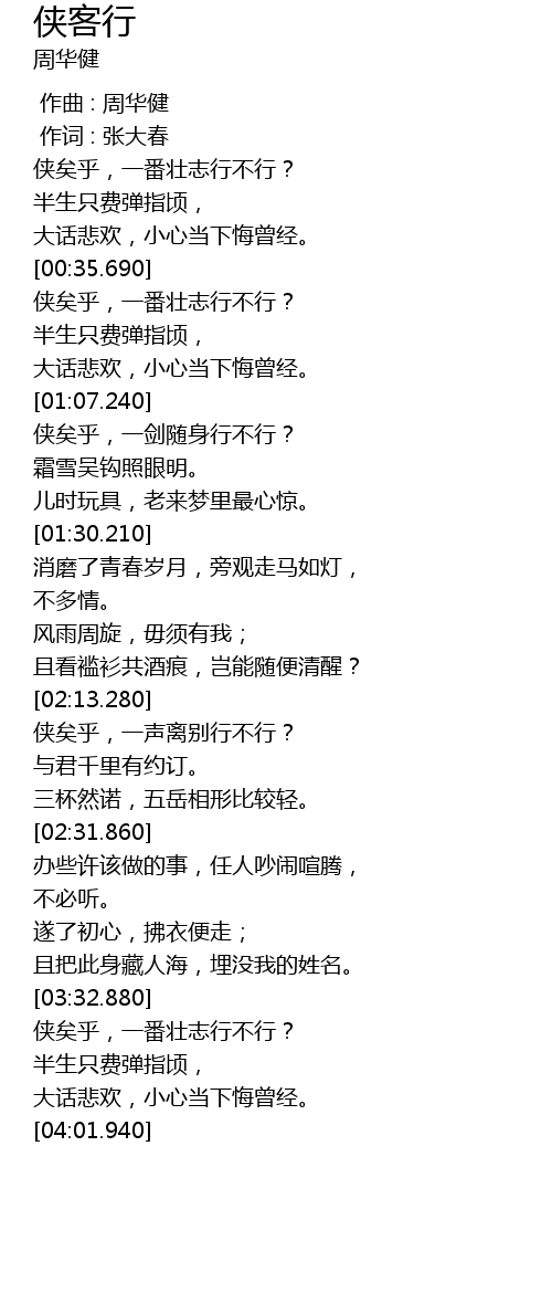 | [03:36.400] | 侠矣乎,一番壮志行不行? |