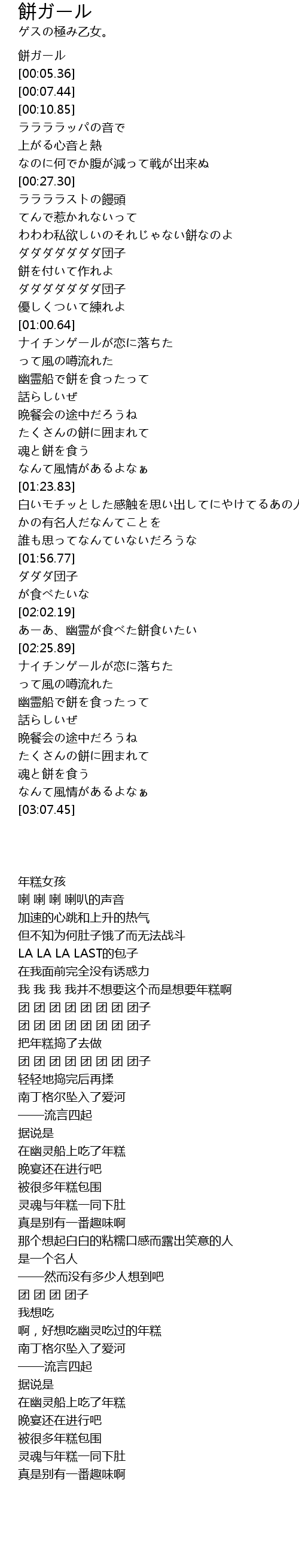 | [03:00.20] | 灵魂与年糕一同下肚 |