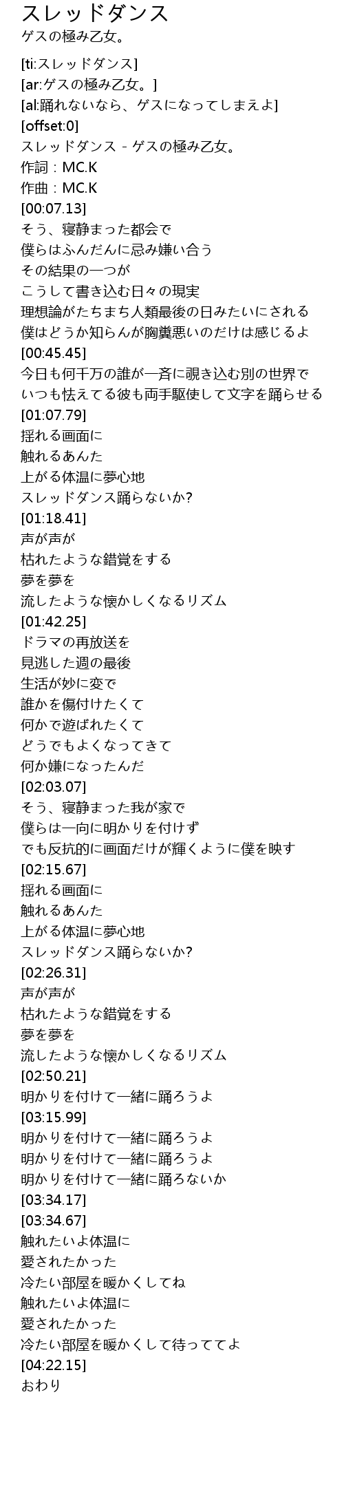 | [00:00.63] | スレッドダンス - ゲスの極み乙女。 |