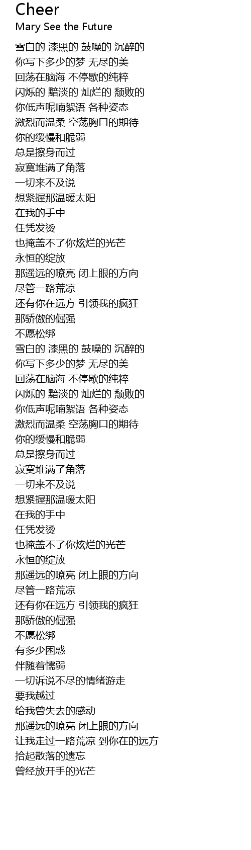 | [02:42.32] | 闪烁的 黯淡的 灿烂的 颓败的 |