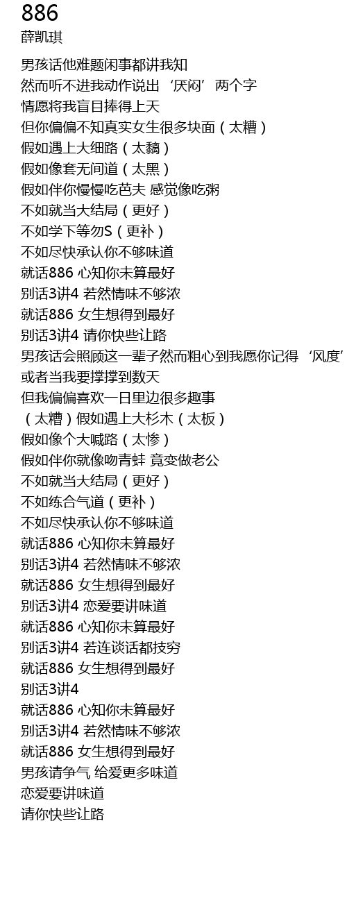 | [00:56.31] | 别话3讲4 若然情味不够浓 |