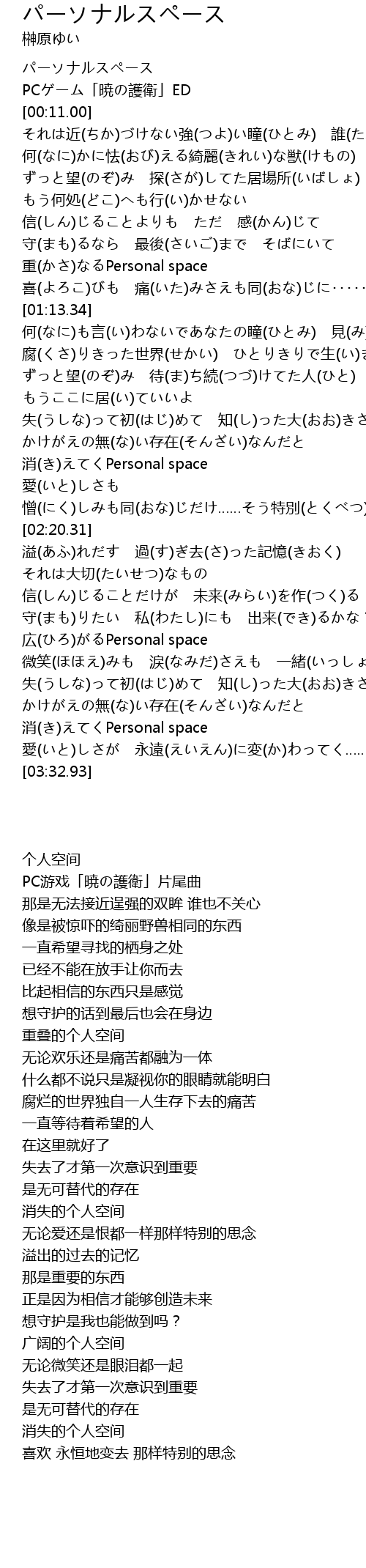 | [00:01.00] | パーソナルスペース |