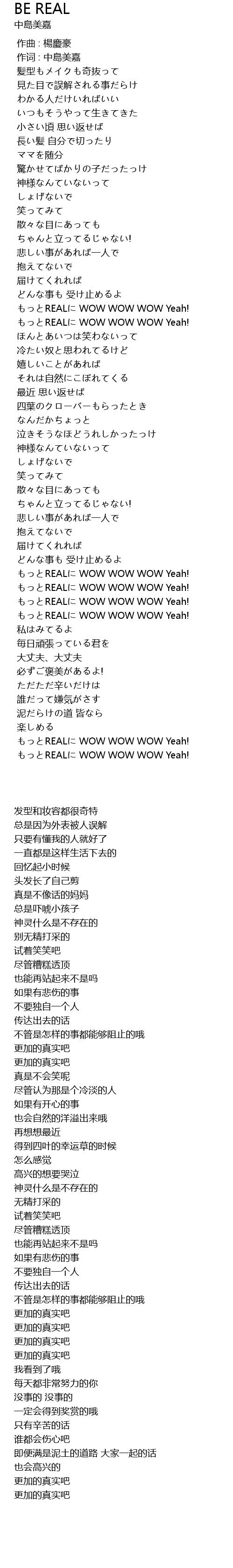 | [02:49.000] | もっとREALに WOW WOW WOW Yeah! |