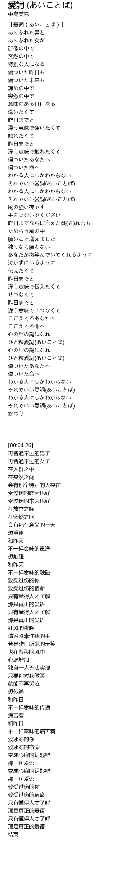 | [00:04.26] | 「爱词(あいことば)」 |