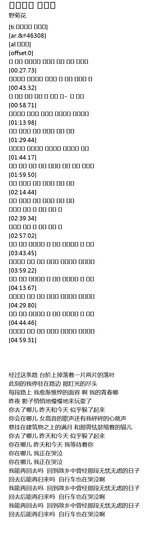 | [03:45.51] | 돌아가서 다신 오지 않으리 자전거가 웃고있네 |