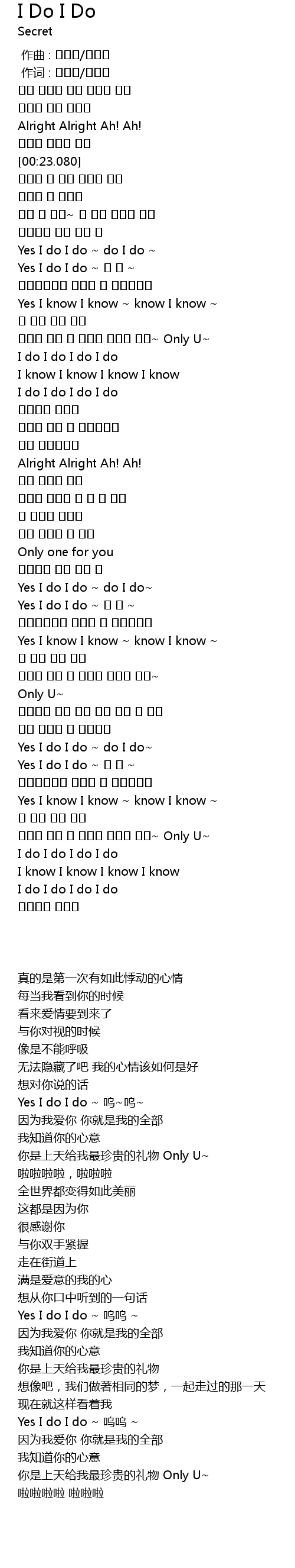 | [02:00.630] | Yes I do I do ~ 우 우 ~ |