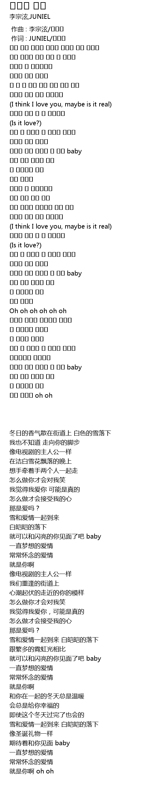 | [01:55.160] | 눈이 와 사랑이 와 하얗게 내려와 |