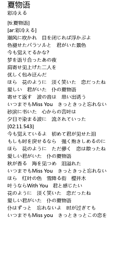 | [02:40.858] | 爱しい君がいた 仆の夏物语 |