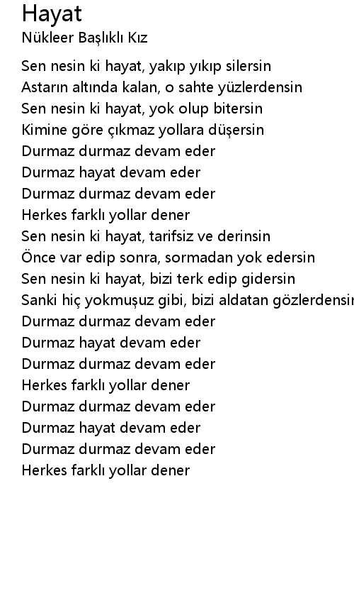 | Sen nesin ki hayat, yakıp yıkıp silersin | |