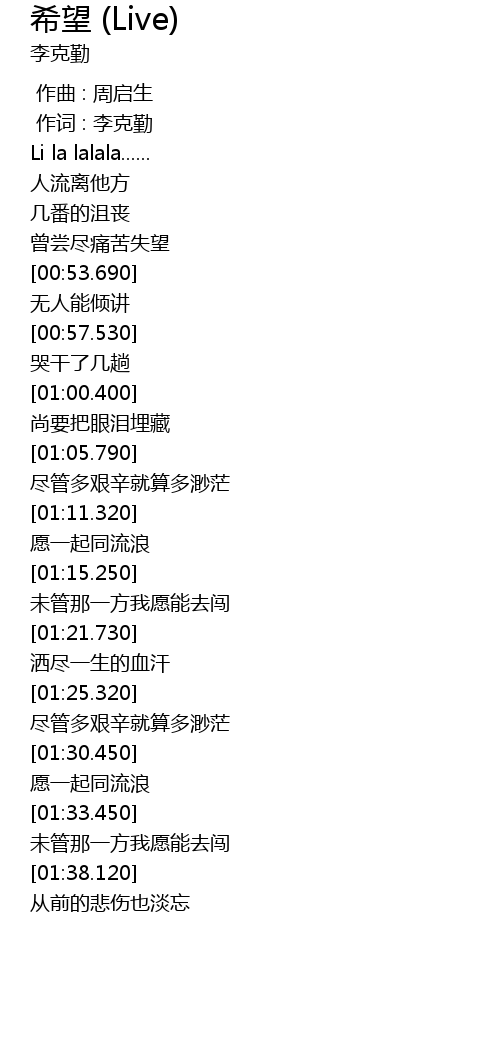 | [00:01.00] | 作词 : 李克勤 |