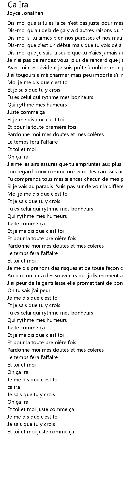 | Dismoi que c' est un dé but mais que tu vois dé jà la suite à deux | |