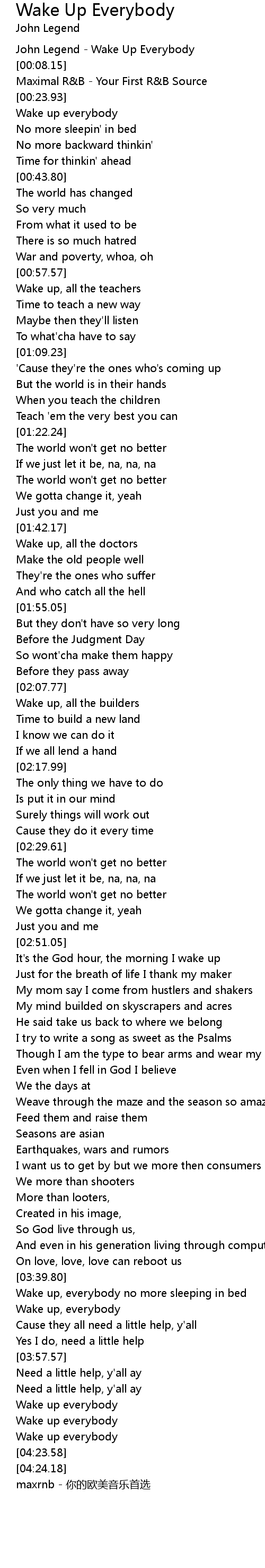 | [00:02.03] | John Legend Wake Up Everybody |