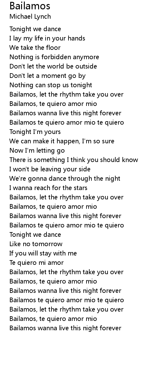 Bailamos te quiero amor mio te quiero |