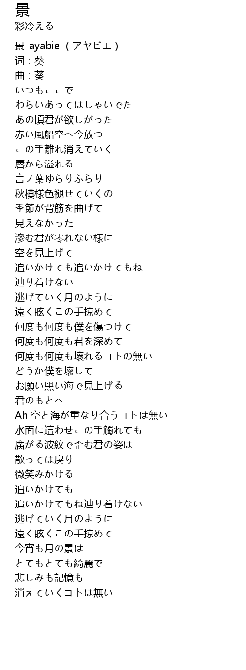 | [00:00.343] | 景-ayabie (アヤビエ) |