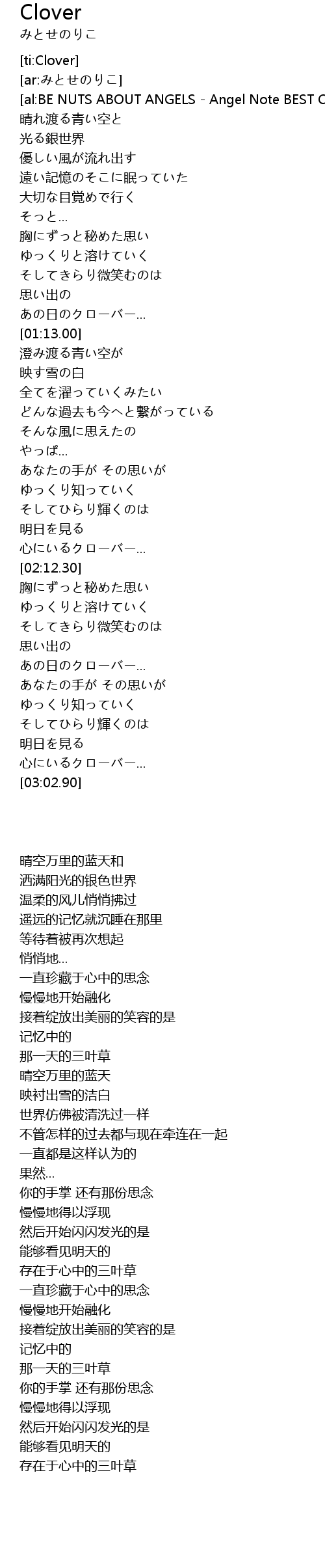 | [02:07.03] | 心にいるクローバー... |