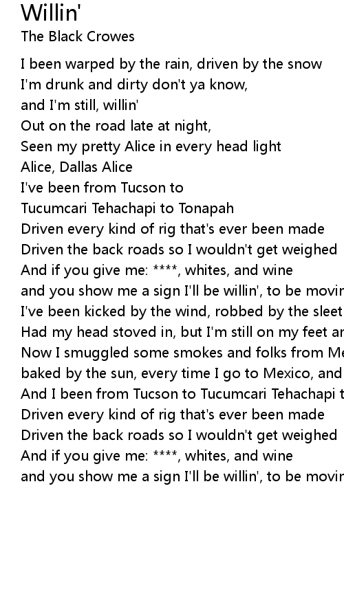 and I'm still, willin' |