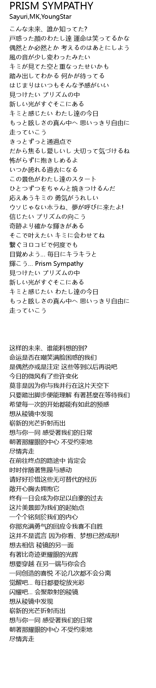 | [02:51.83] | 輝こう… Prism Sympathy |