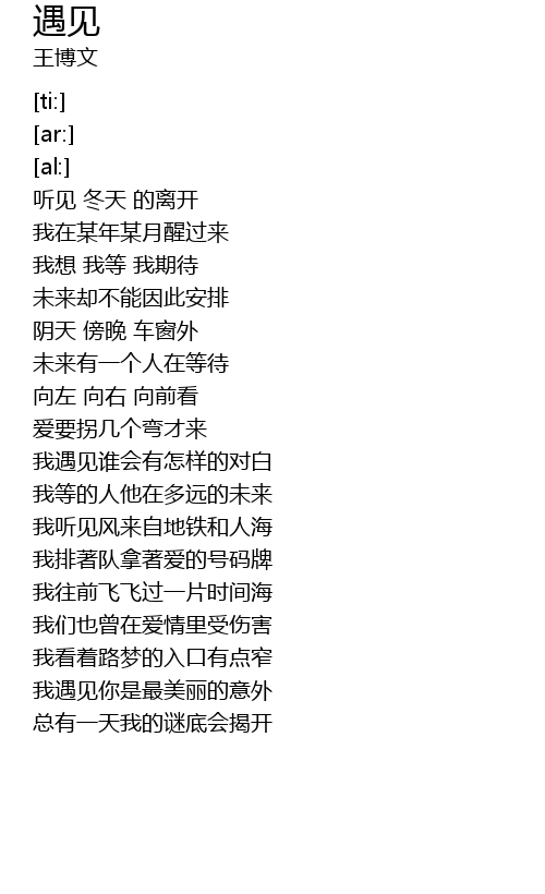 | [01:21.85] | 我遇见谁会有怎样的对白 |