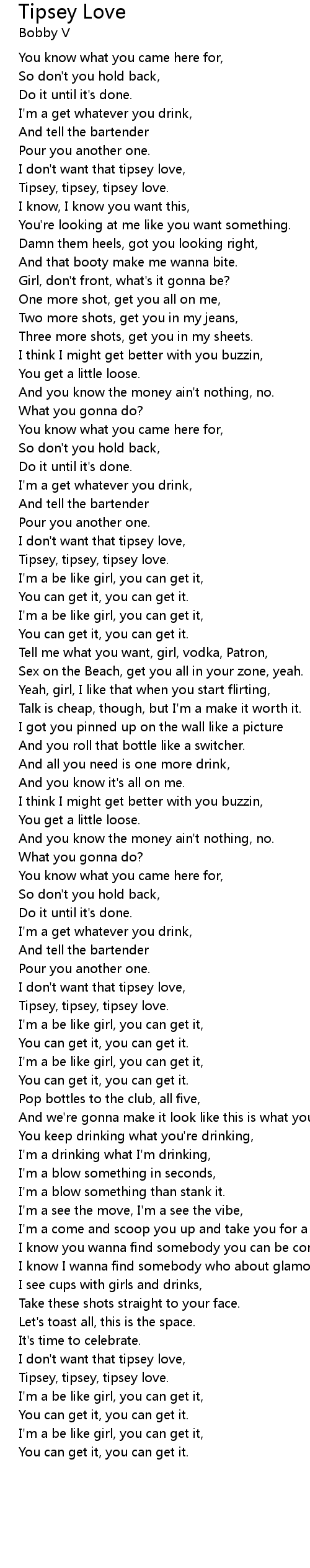 Tipsey, tipsey, tipsey love. |