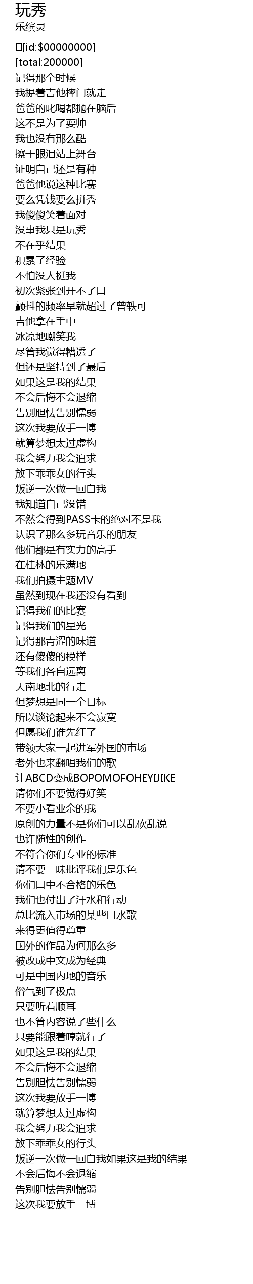 | [00:31.685] | 没事我只是玩秀 |