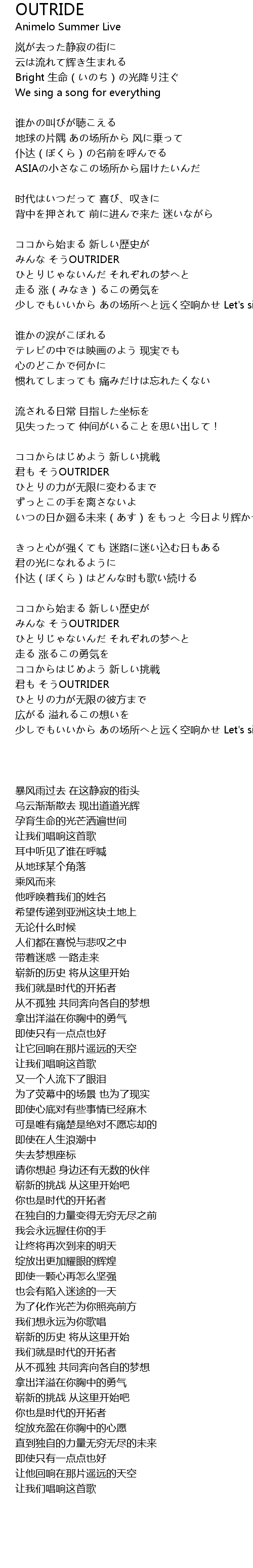 | 歌曲 | OUTRIDE |