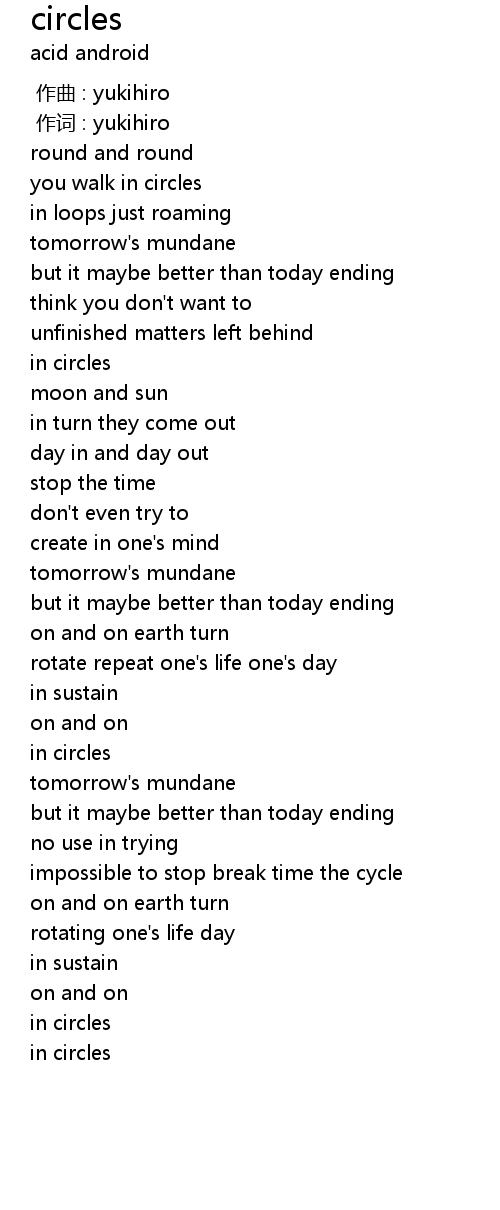 | [01:50.57] | rotate repeat one' s life one' s day |