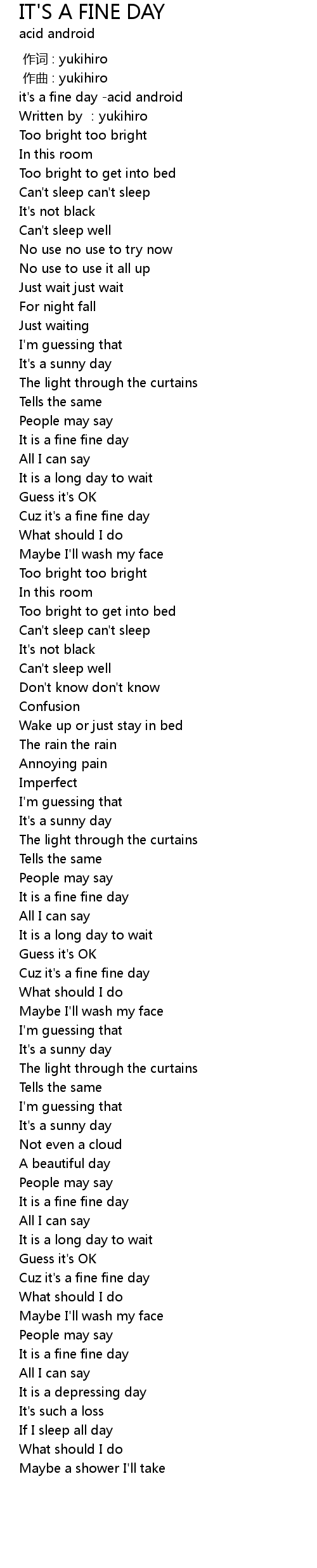 | [00:00.00] | it's a fine day -acid android |