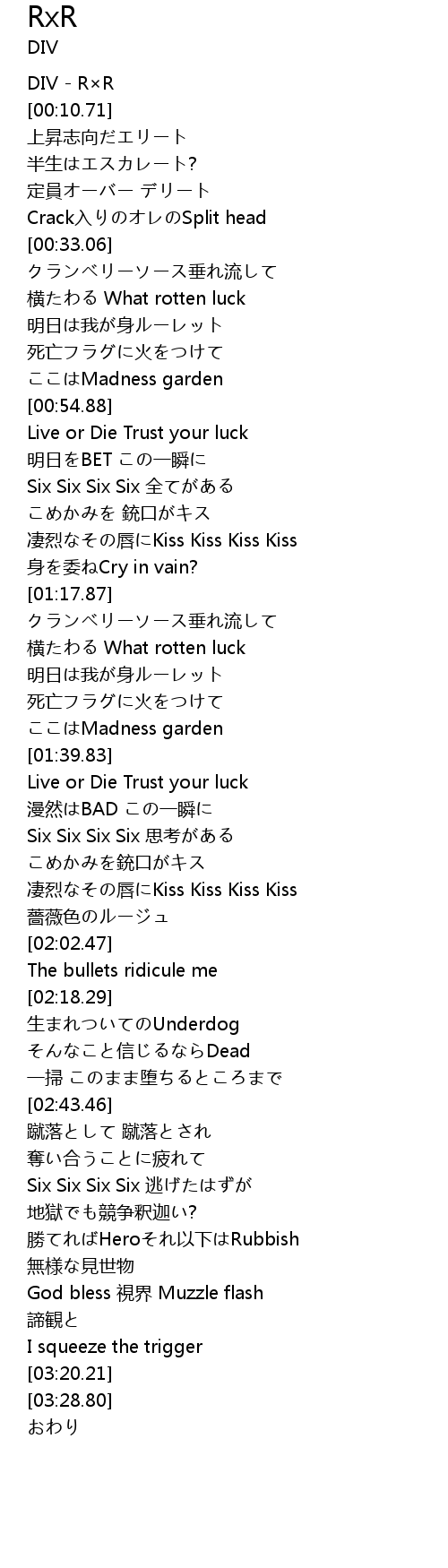 | [01:33.06] | 死亡フラグに火をつけて |