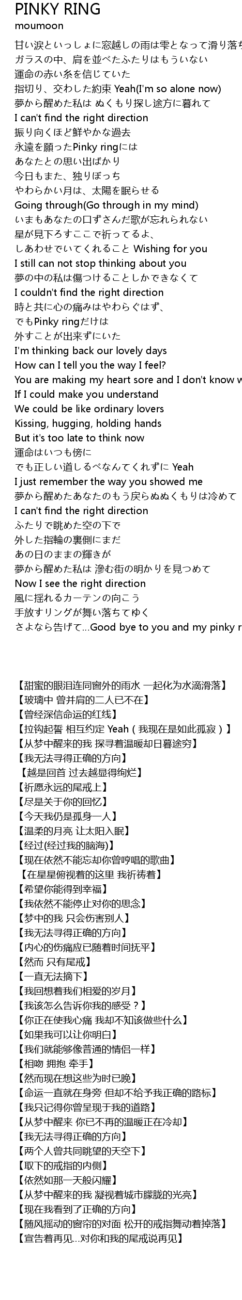 | [01:18.53] | yǒng yuǎn yuàn Pinky ring |