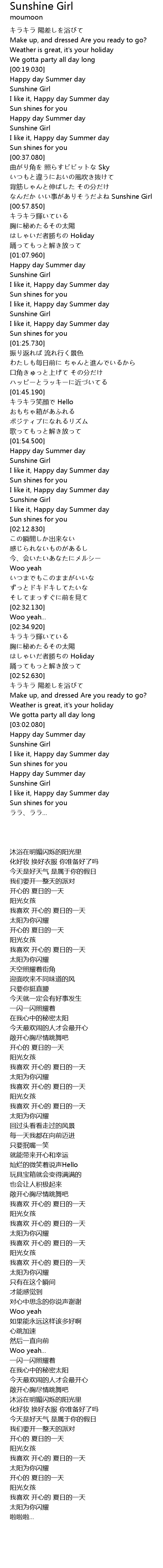 | [00:51.870] | なんだか いい事がありそうだよね Sunshine Girl |