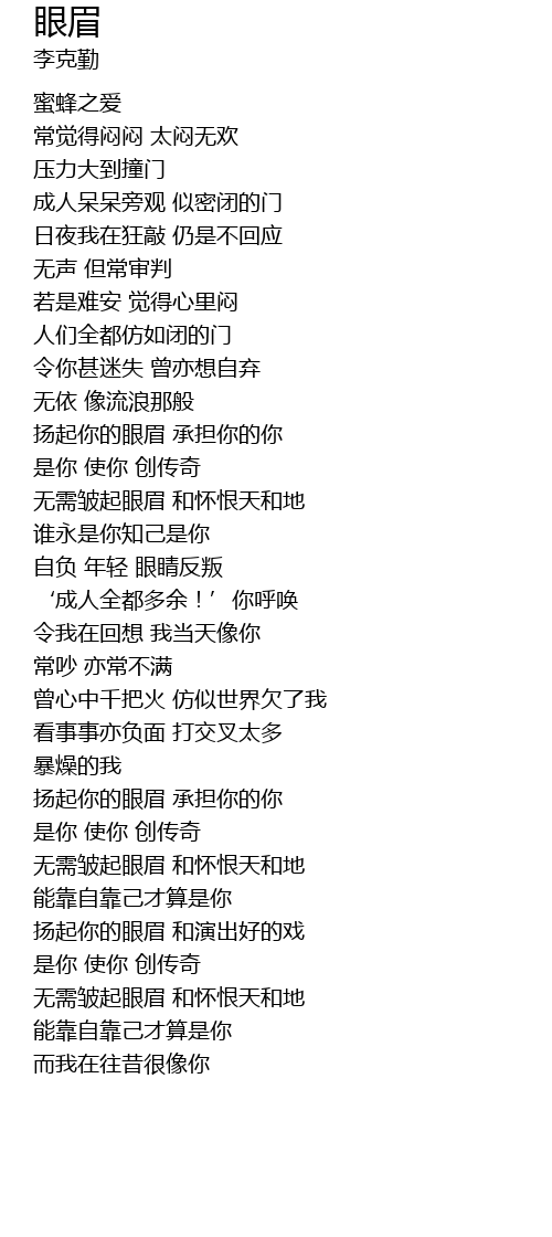 | [01:05.99] | 扬起你的眼眉 承担你的你 |