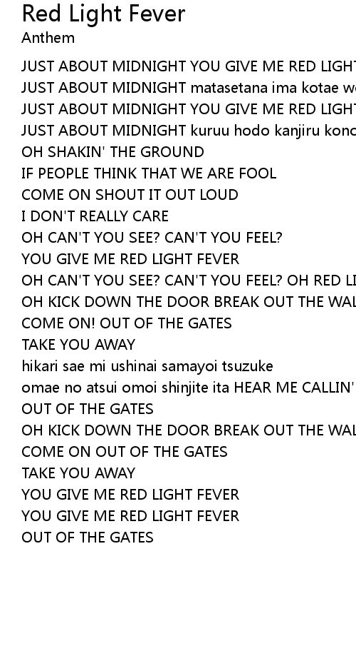 | OH CAN'T YOU SEE? CAN'T YOU FEEL? OH RED LIGHT FEVER | |