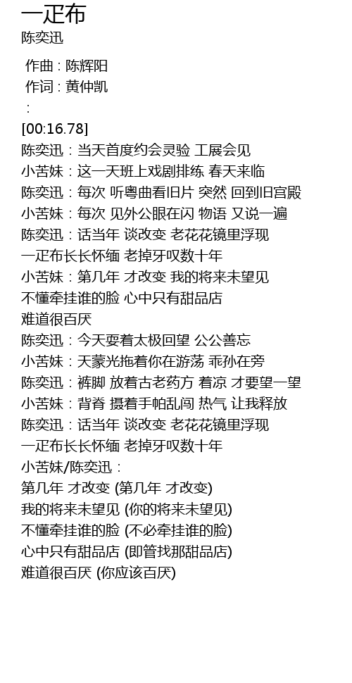 | [02:16.78] | 小苦妹/陈奕迅: |